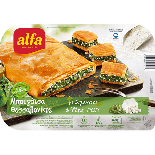 Die authentische Bouatsa aus Thessaloniki mit Mizithra und Feta PDO von alfa zeichnet sich durch ihren dünnen, knusprigen Teig und ihre köstliche Füllung aus!
